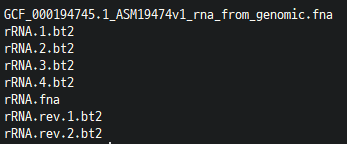 인덱싱이 완료되면 아래와 같이 bt2 라는 suffix가 붙은 6개의 파일을 확인할 수 있다.