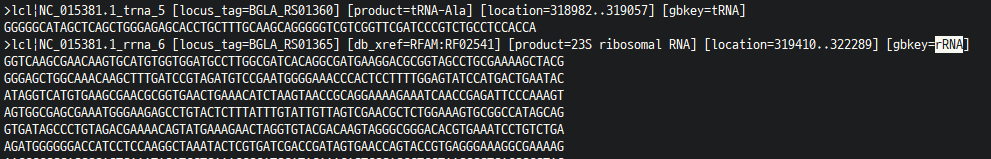 gbkey가 rRNA인 것만을 선택하고, 대표이름은 locus_tag로 설정하여 rRNA reference를 다시 만들어 준다.