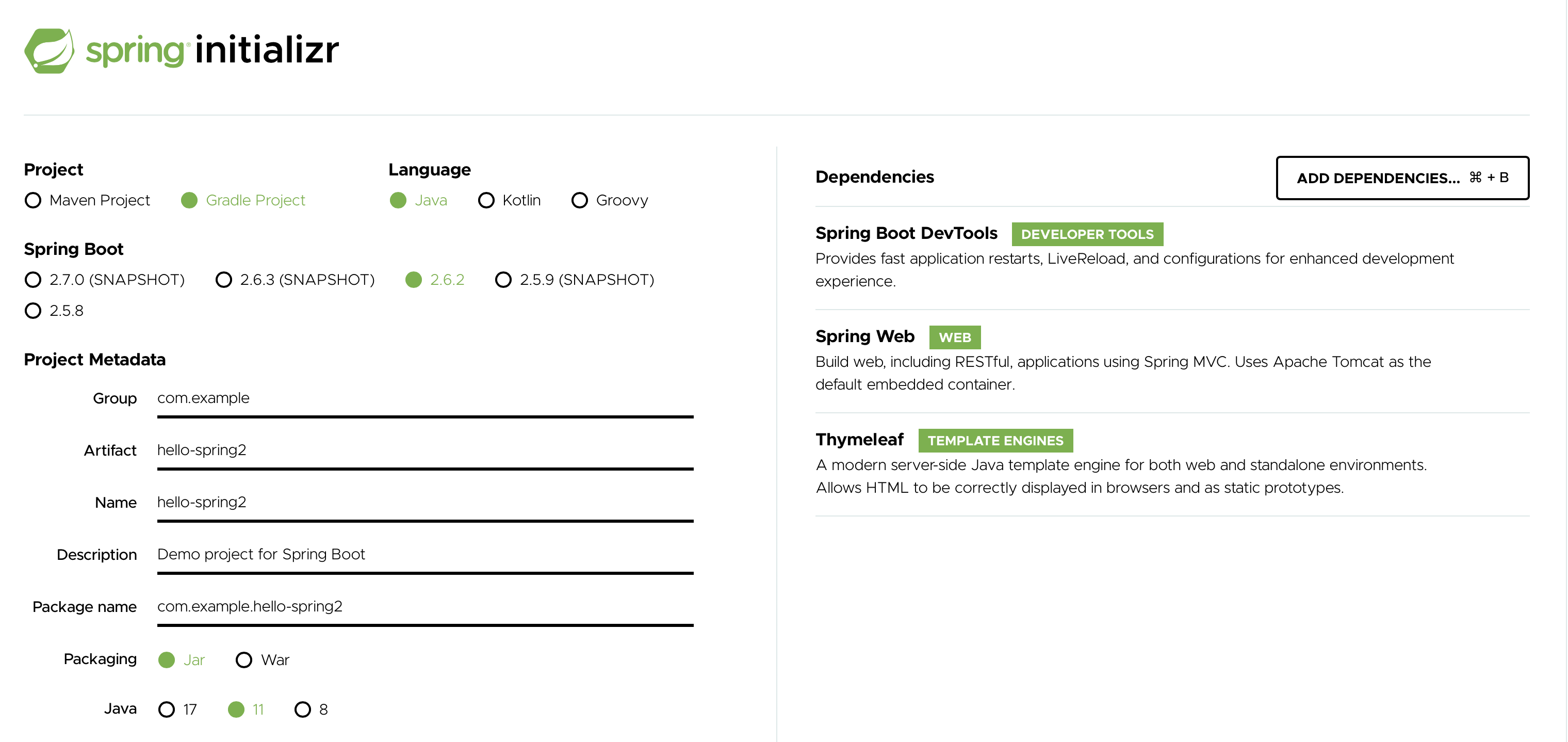 spring.io 에서 초기 세팅이 가능합니다.
