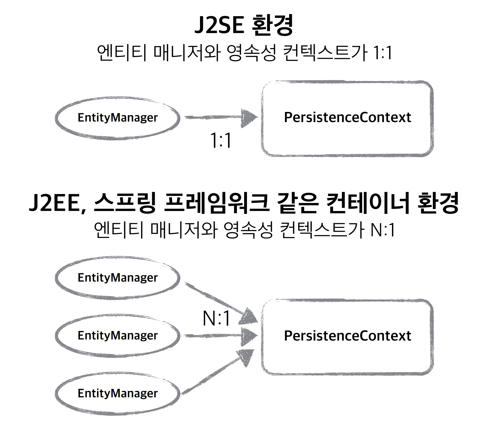 EntityManager를 만들면 1:1로 영속성 컨텍스트라는 공간이 생기고, EntityManager를 통해서 접근을 할 수 있다.