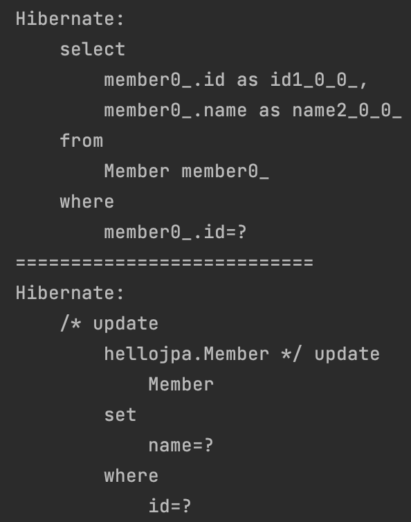 JPA는 알아서 update query를 생성하고 발송한다.
