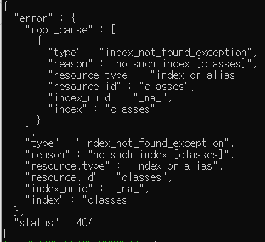status 404: index를 만들어 준 적이 없기 때문에 찾을 수 없다고 나타남.