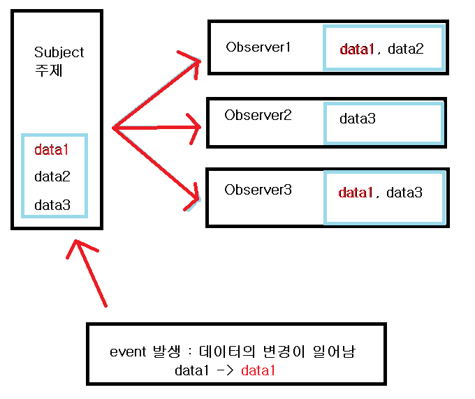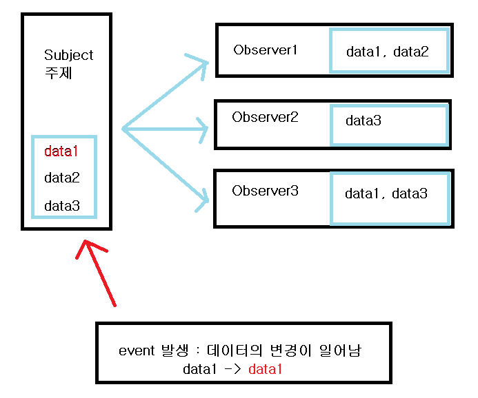 4. data 변경 event가 발생하면, 변경된 data 정보는 subject로 전달됩니다.