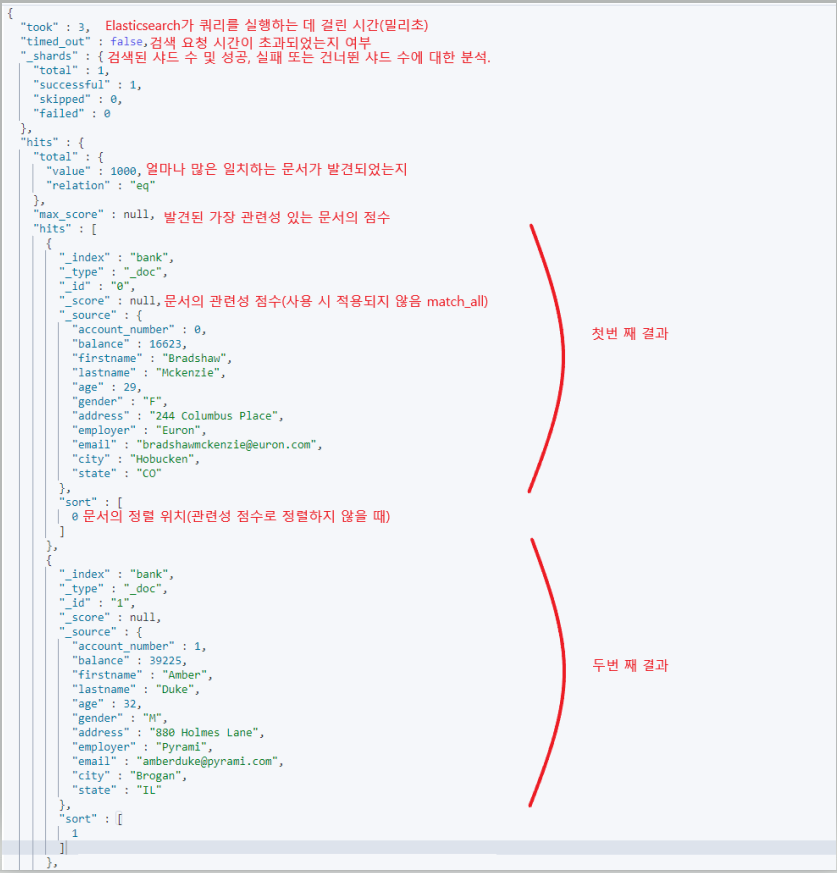 - hits.total.value- 얼마나 많은 일치하는 문서가 발견되었는지
