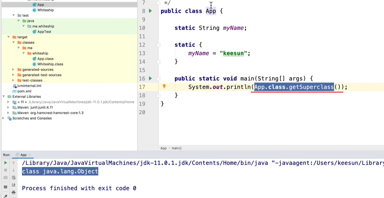 부모 클래스 이름 (상속 받고 있는 상위 클래스 명, ex Object.class)