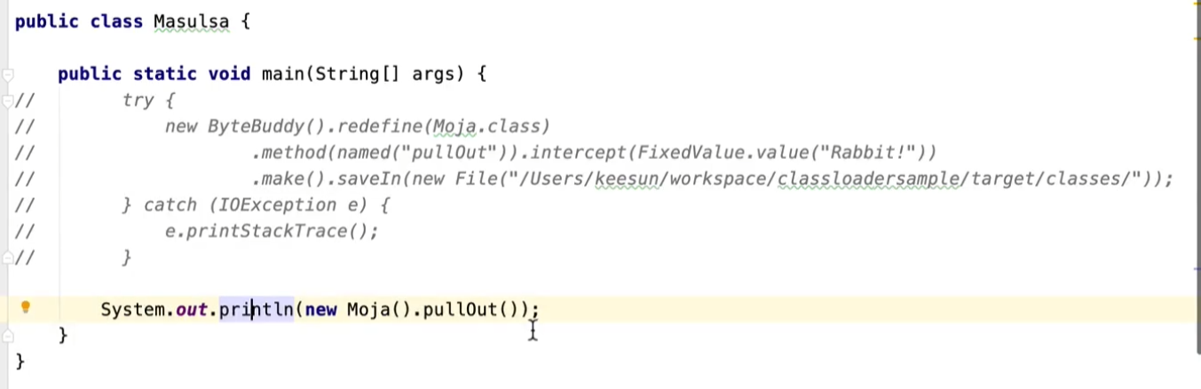 2. 바이트 코드가 변경된 것을 확인한다. (Moja 클래스에 pullOut 메서드가 Rabbit을 return하고 있는 것을 확인할 수 있다.