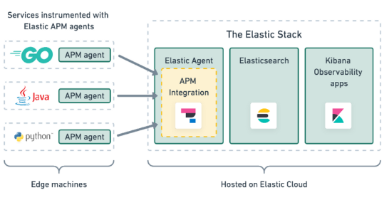 Apm agents on edge machines send data to a centrally hosted APM integration: