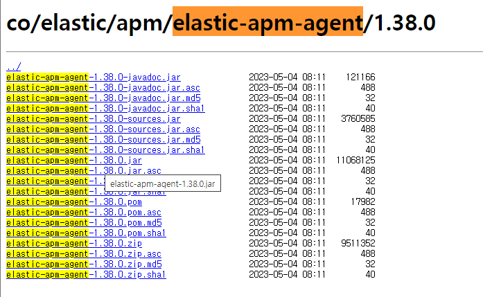 elastic-apm-agent-1.380.jar 파일을 다운로드 받습니다.