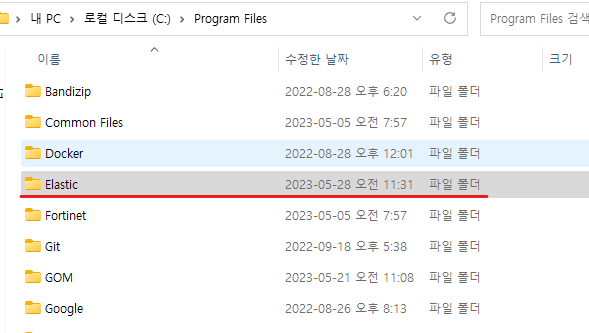 elastic-agent에 policy를 등록하면 elastic-agent도 실행되고, 폴더도 하나 생성되는 것을 확인할 수 있습니다. 저는 C:prografiles 폴더에 Elastic 이라는 폴더가 생성되었고, 여기에 정보가 저장되어 있는 것 같습니다.