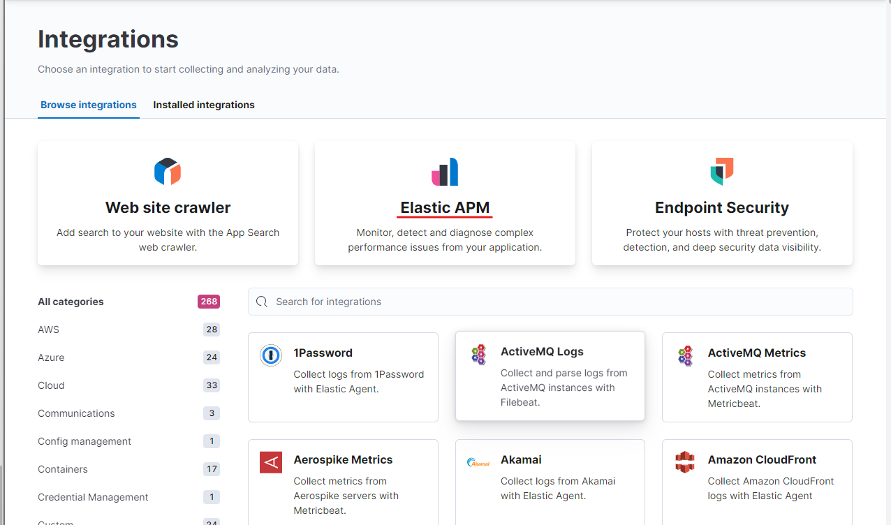 3. APM integrations 버튼을 클릭합니다.