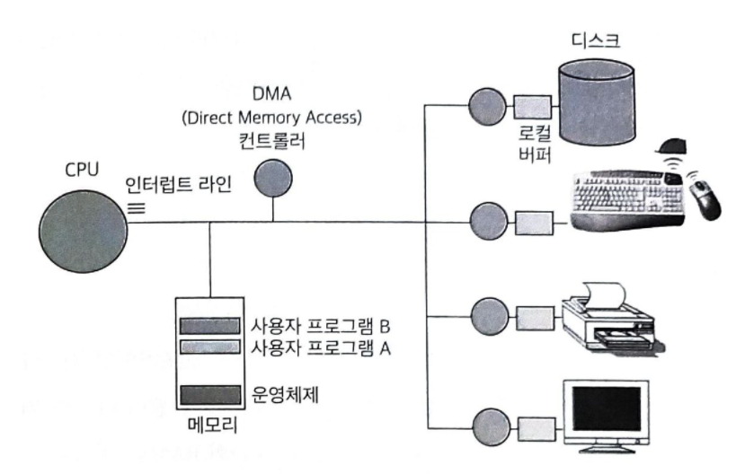 - 외부장치: 디스크, 키보드, 마우스, 모니터, 네트워크 장치