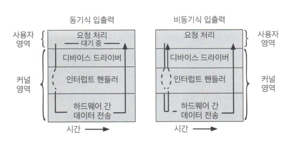 입출력은 입출력을 요청한 프로세스 처리방법에 따라 두가지로 나눌 수 있다.