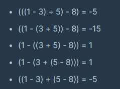 여기에서 주의해야 할 점은 1 + (-3 + 5) -8 과 같은 연산이 없다는 것이다.